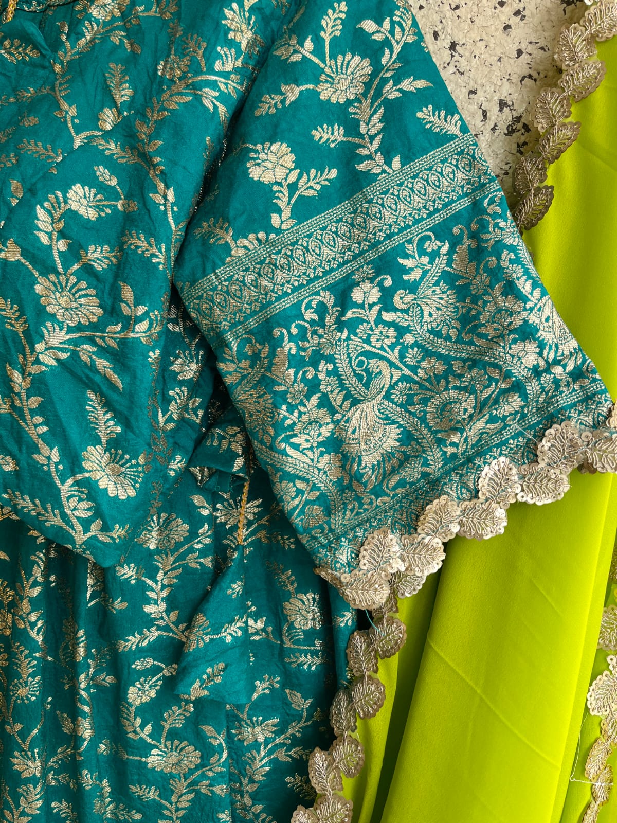 Fabric : Dola fabric with embroidery Scalloped sleeves