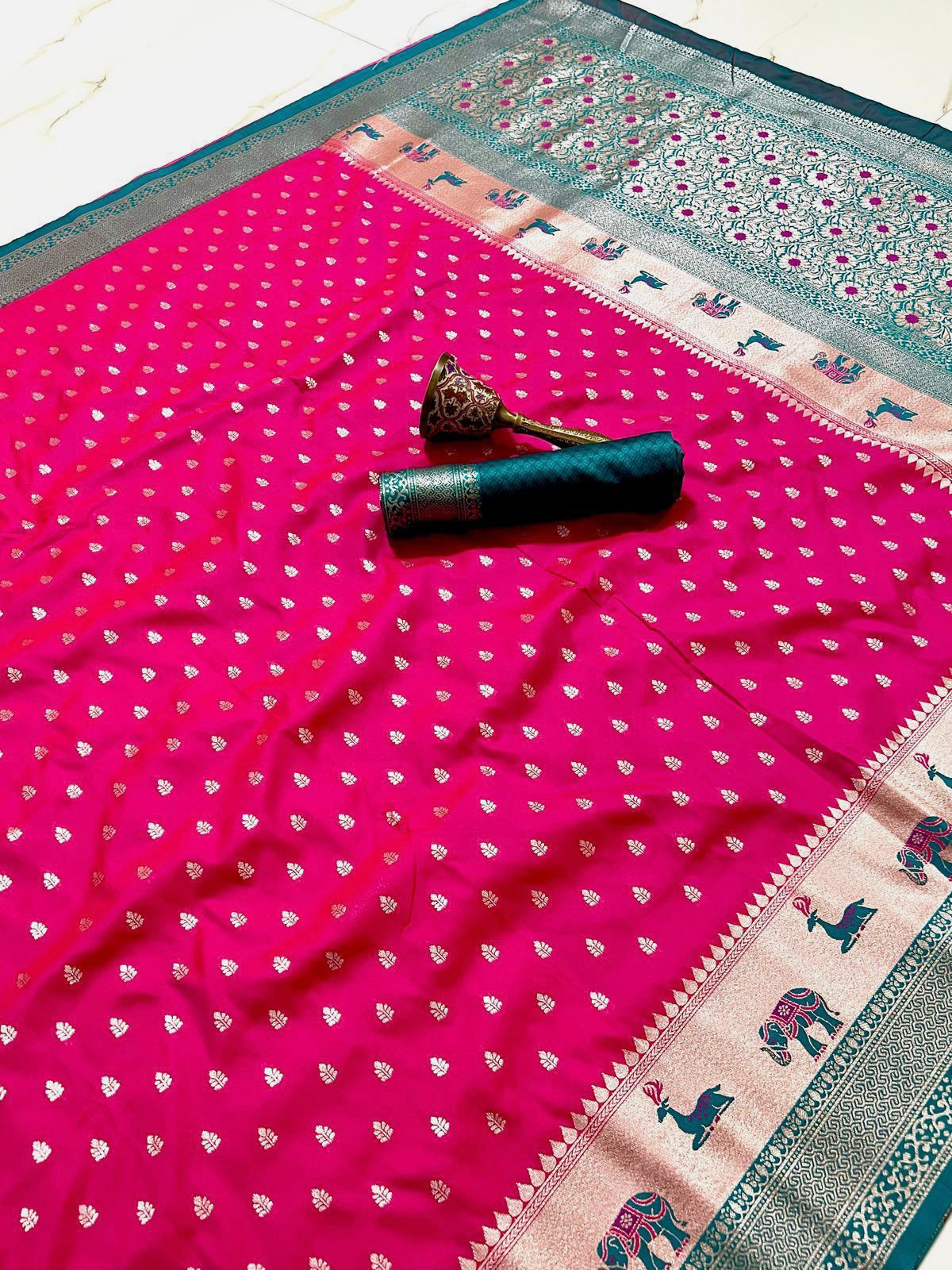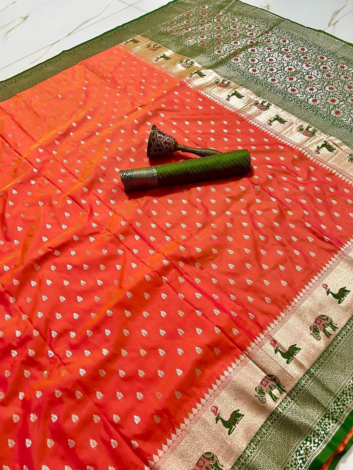 AND CONTRAST MINAKARI BODER AND HEAVY MINA ZARI WEAVING PALLU