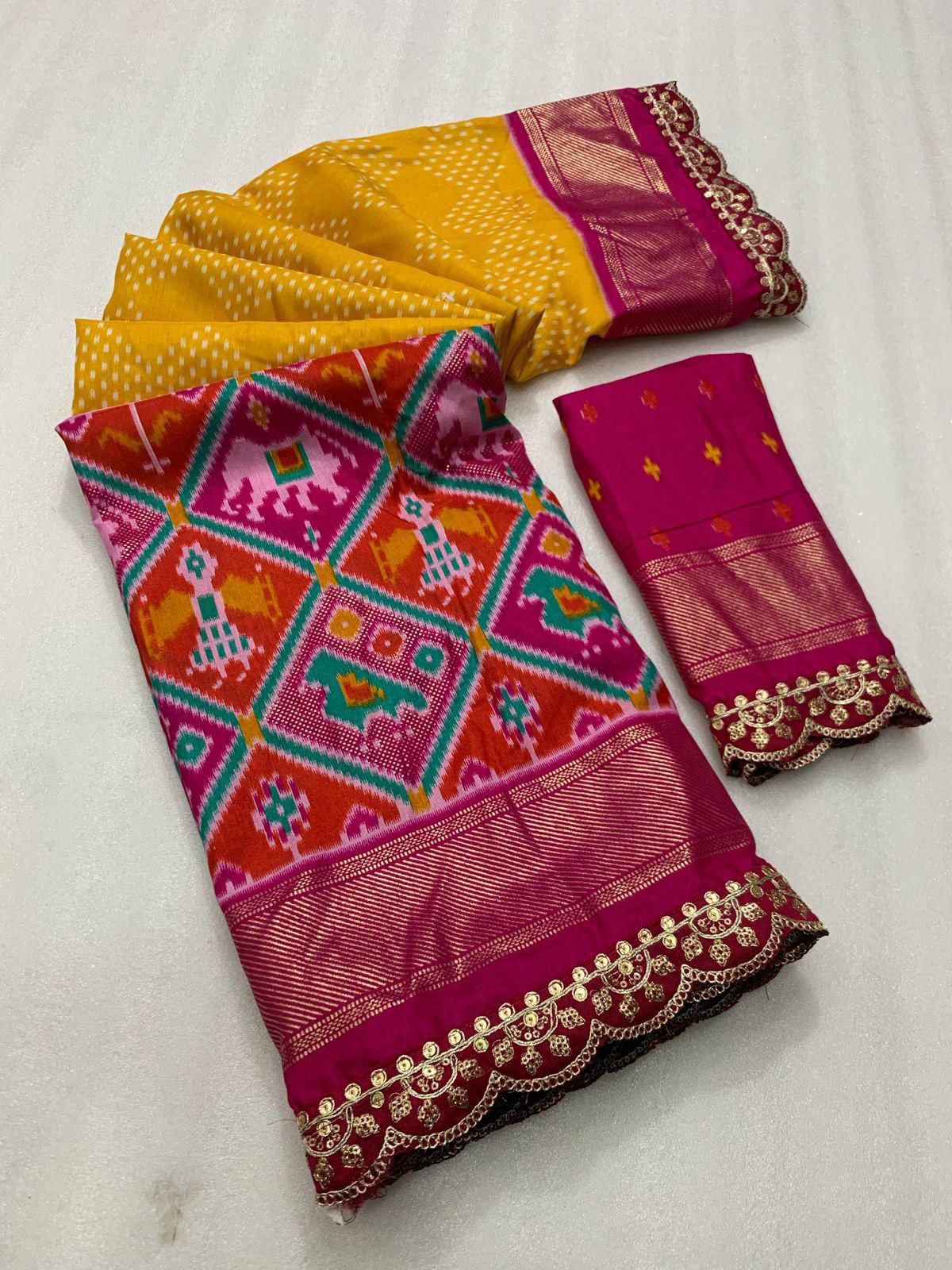 Soft silk with all over Ikkat prints Saree