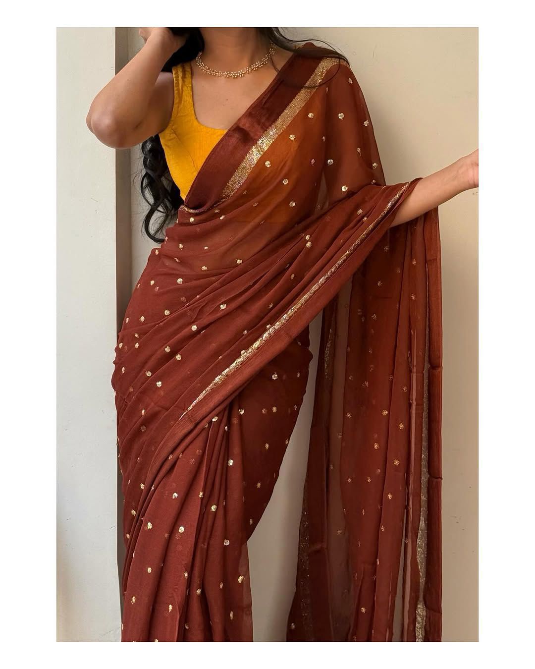 Viscous Georgette Butti Sequence Full Worked Saree With Running Blouse